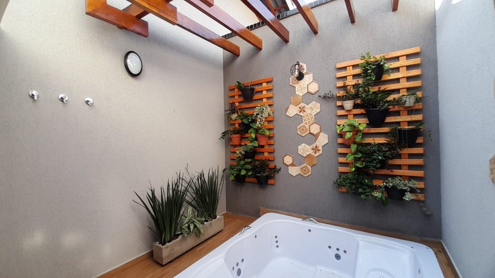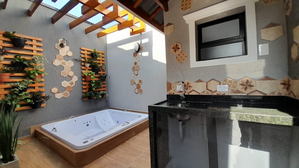 3 DORMITÓRIOS ( SENDO 2 SUÍTES, SALA AMPLA, COZINHA COM BALCÃO AMERICANO, WC SOCIAL, ÁREA DE SERVIÇO, GARAGEM PARA 2 AUTOS, ÁREA GOURMET C/ SPA (5 PESSOAS) E WC.