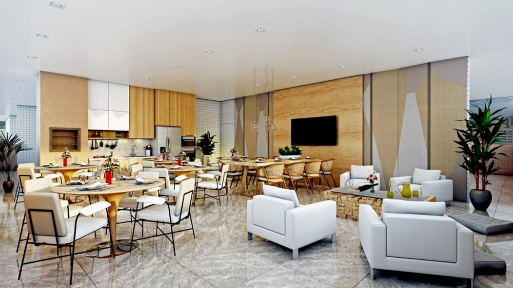 - MEZANINO: TERRAÇO FITNESS, SALÃO DE JOGOS ADULTO, SALÃO DE JOGO JUVENIL, SALÃO DE JOGOS INFANTIL, PET CARE, SALÃO DE BELEZA, BRINQUEDOTECA, SALÃO DE FESTAS/REUNIÃO