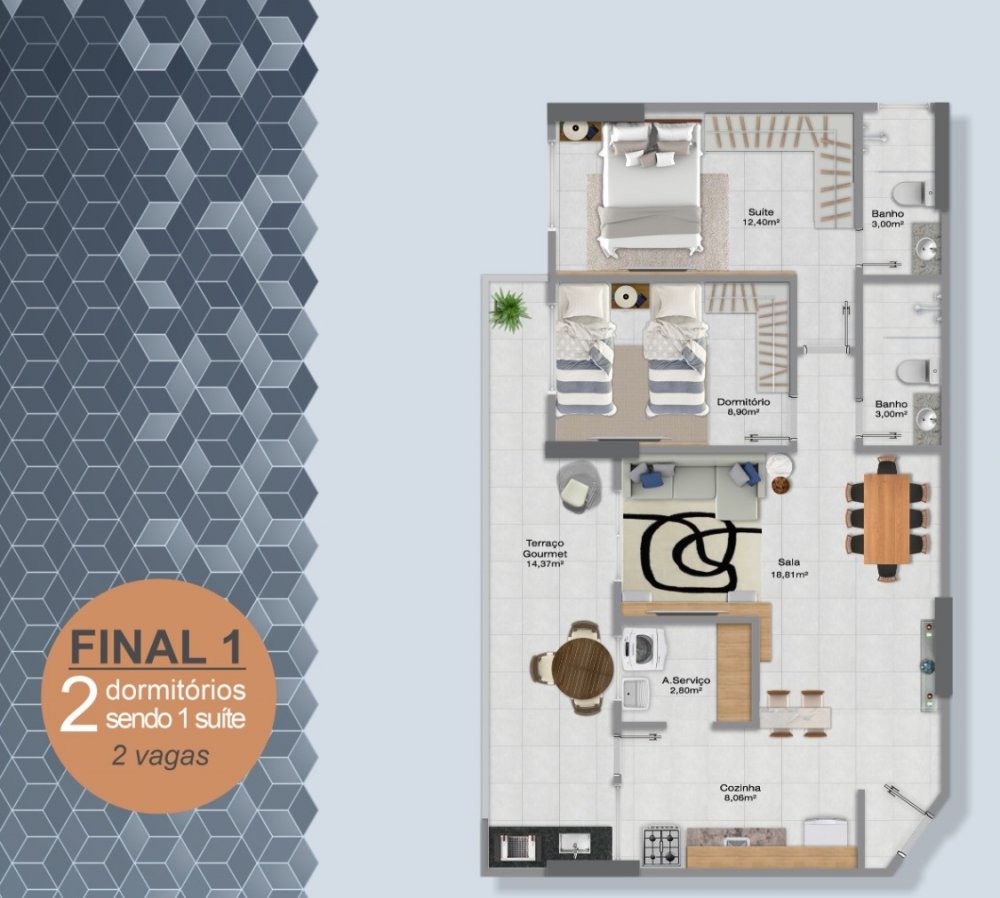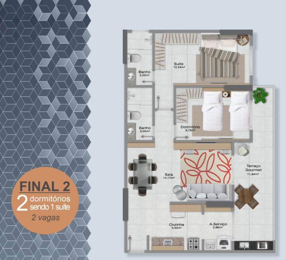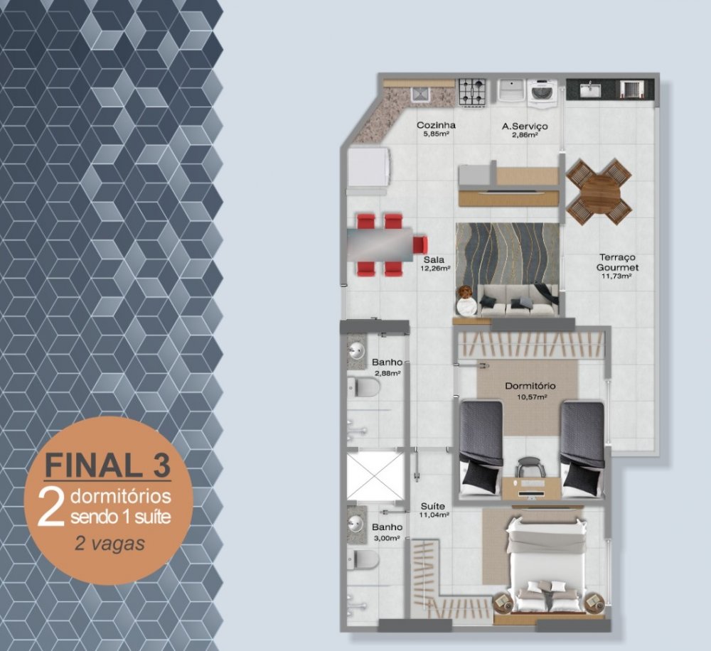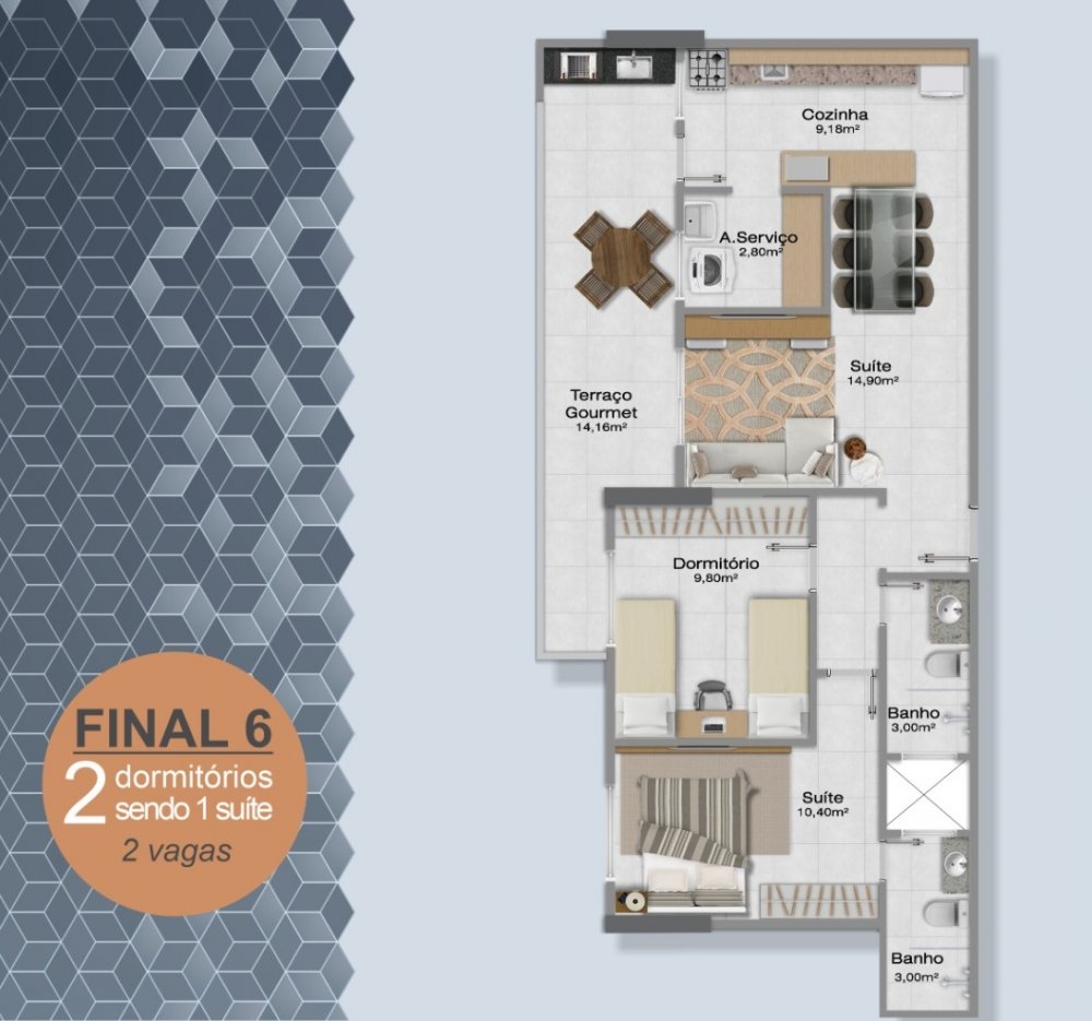 - Área Privativa: 69,78 m²